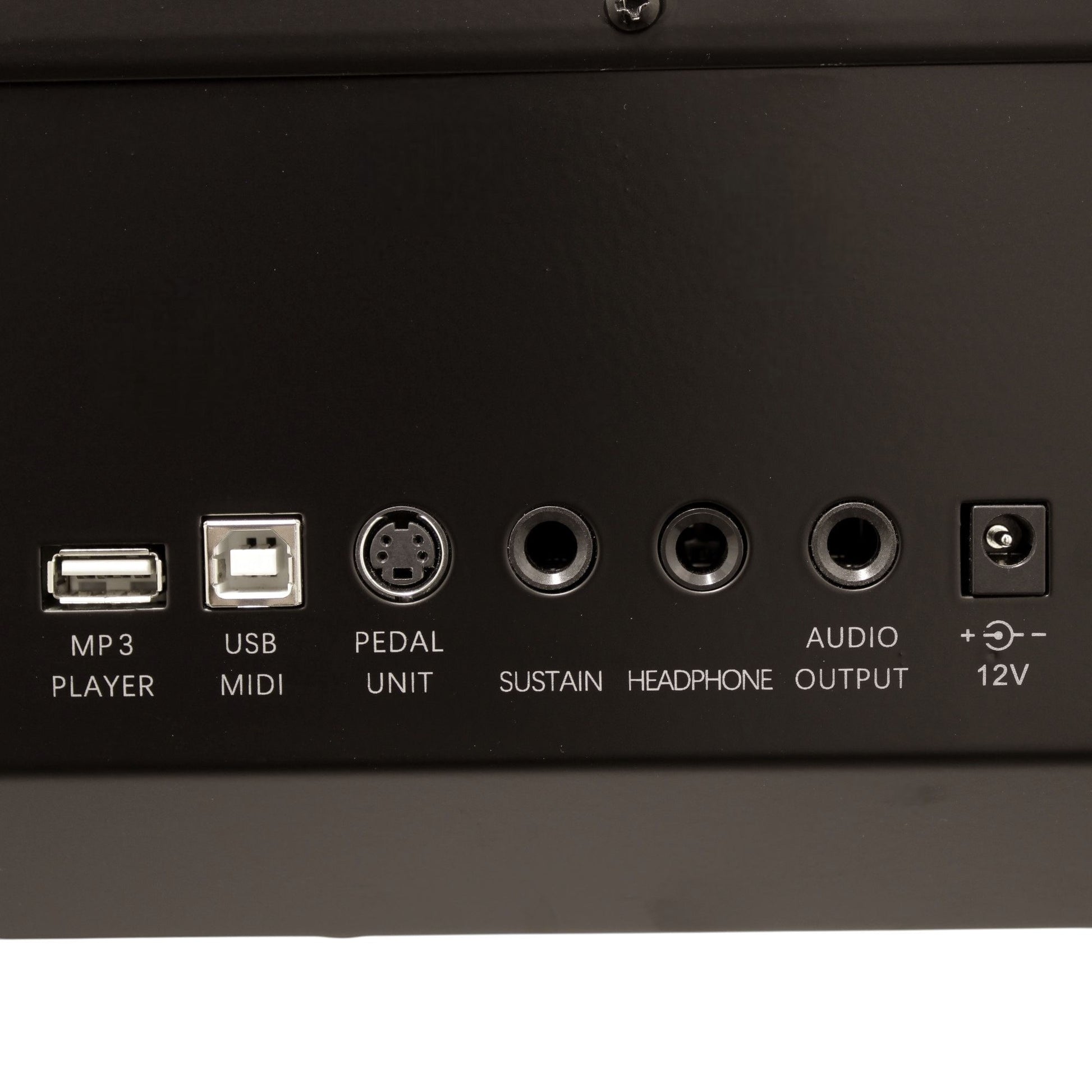 - Conexiones completas para audífonos, USB, MIDI, y más.